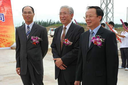 そして、HFFは2006年3月31日に佛山市高明区に設立されました。会社設立とほぼ同時にプロジェクトを結成して、高明区政府の一室をかりきり運転手の採用から始まり、徐々に必要な人材を採用し会社建築の準備に入りました。地鎮祭は縁起を担いで6月6日に大勢のお客様やHF関係者をご招待して盛大に開催しました。